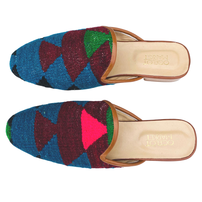 Men's Turkish Kilim Mule - Blue, Maroon, Pink, Green 14 US/47 EU
